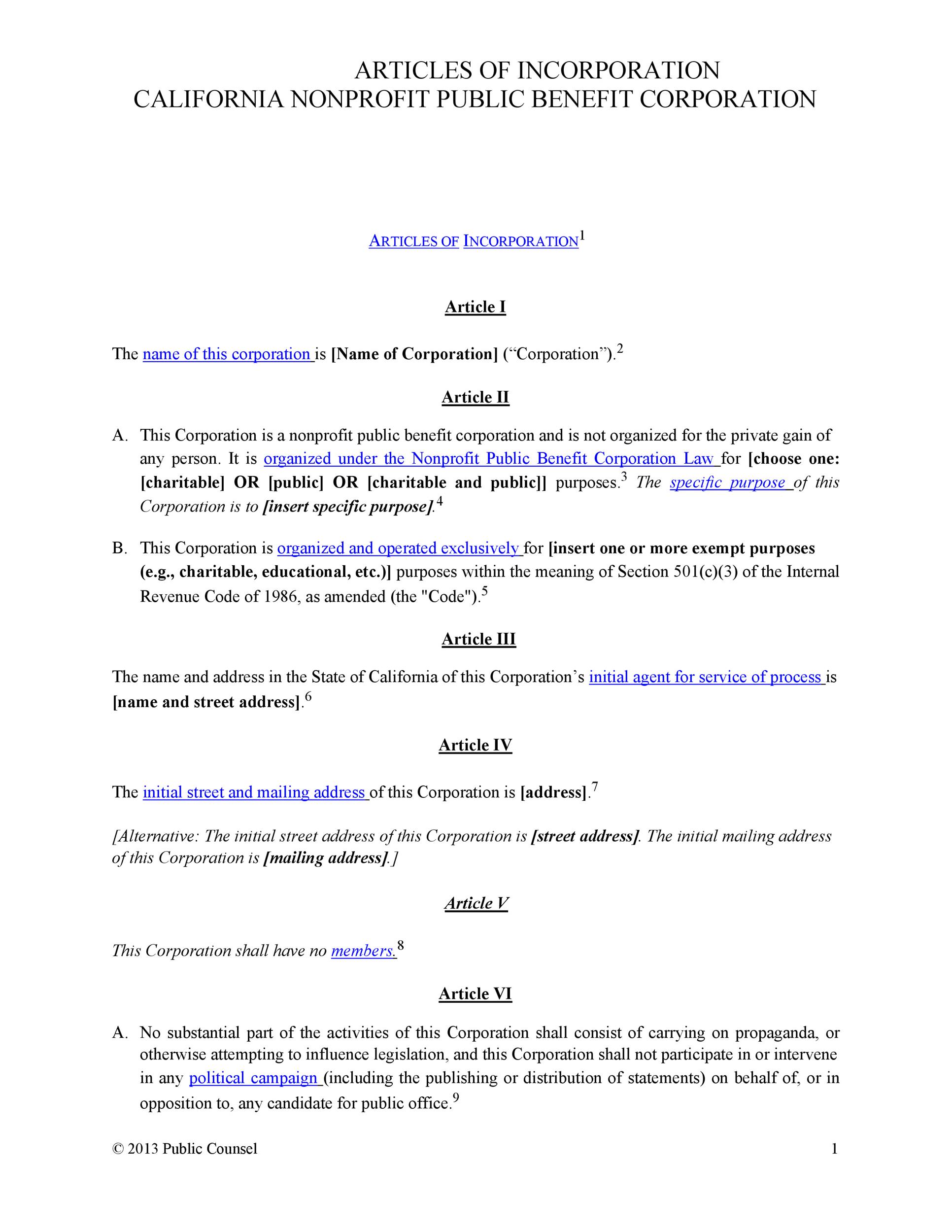 Articles of Incorporation are filed with-and supplied by-Secretary of State offices